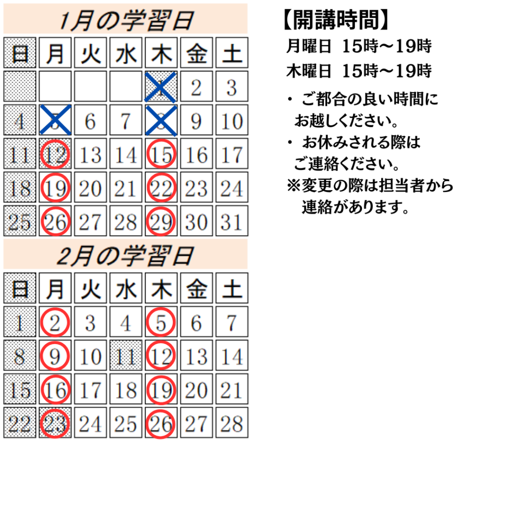 2026年1月のお知らせ